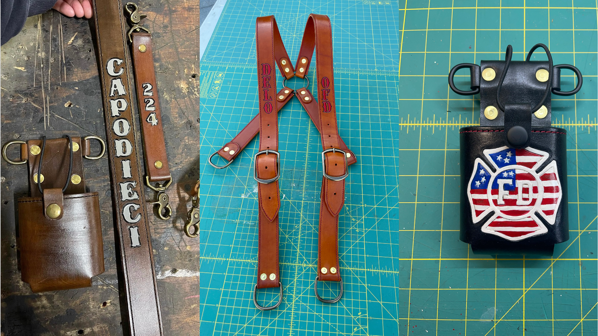 Our leather products wear in beautifully with age and are designed for rugged utility use